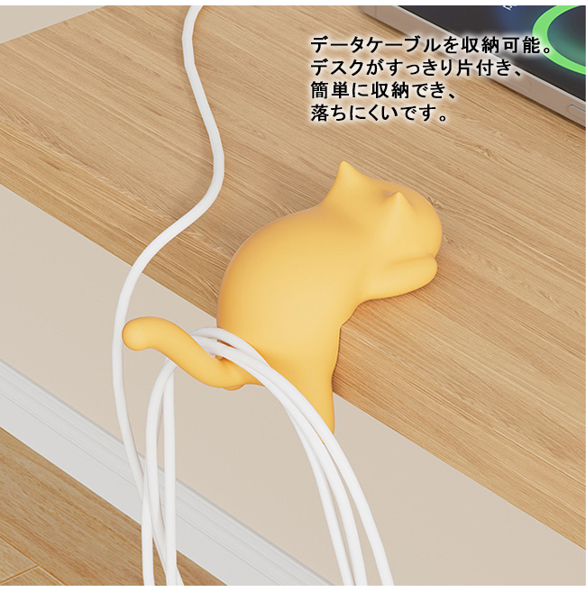 データケーブルを収納可能。デスクがすっきり片付き、簡単に収納でき、落ちにくいです。