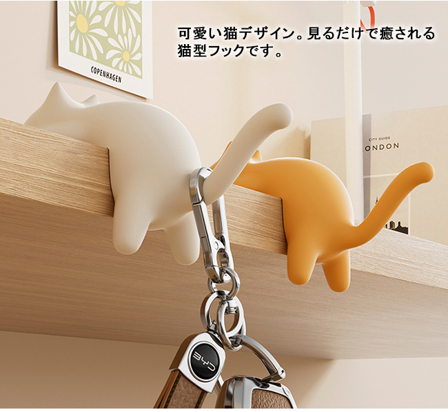 可愛い猫デザイン。見るだけで癒される猫型フックです。