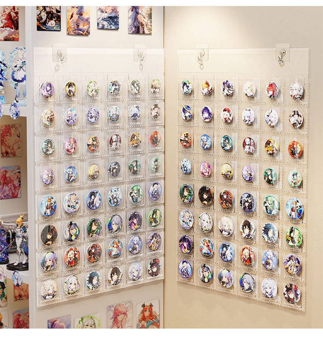 組み立ても簡単で、フック 2 個サービス、缶バッジとトレカのサイズに合わせた設計で、安定した収納と展示を実現します。