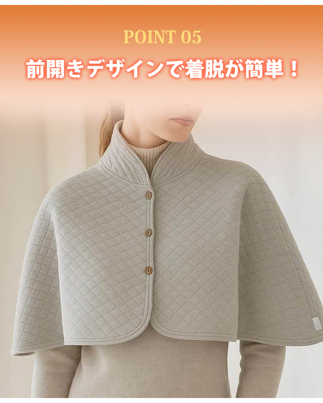 冷えやすい肩先を柔らかく包み込み、ずっとあったかさをキープ
