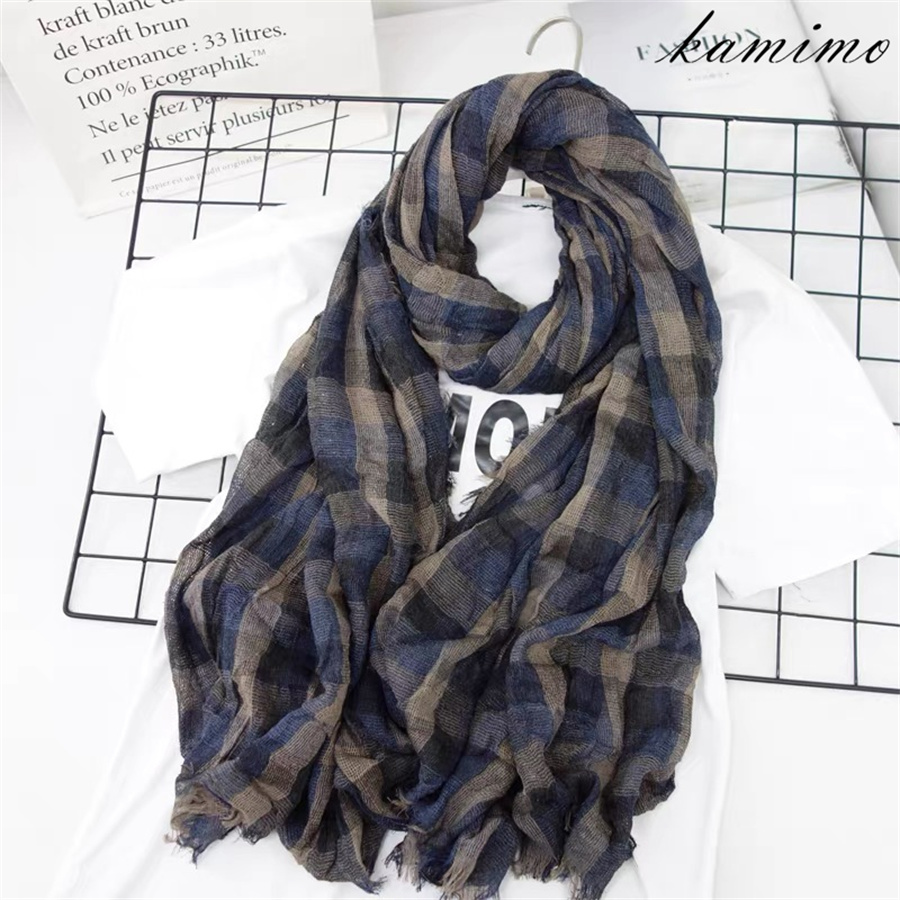 『kamimo』 メンズ スカーフ マフラー チェック柄 ガーゼストール 高級感 オシャレ 柔らかな肌触り 薄手 大判 一年中活躍 ユニセックス mfa1025