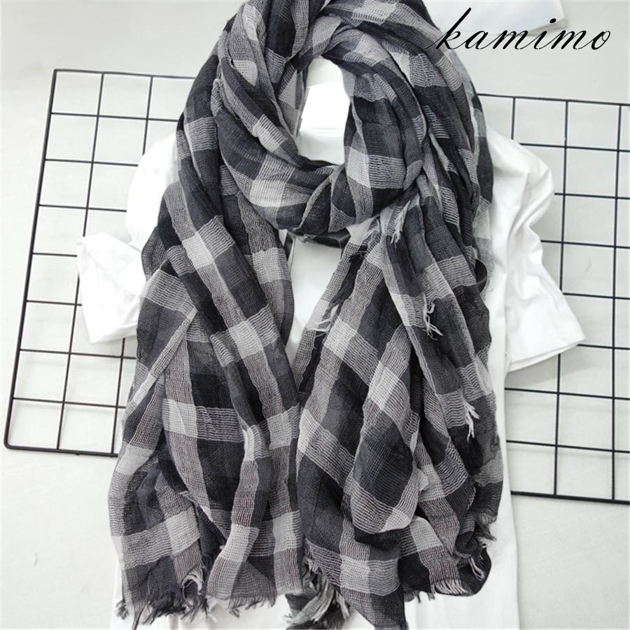 『kamimo』 メンズ マフラー チェック柄 ガーゼストール 高級感 オシャレ 柔らかな肌触り 薄手 大判 一年中活躍 ユニセックス mfa1027