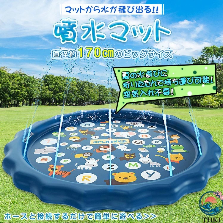 噴水マット 噴水池 噴水プール プールマット 170cm 水遊び 空気入れ不要 折りたたみ収納可能 持ち運び 子供用 アウトドア 家庭用 親子芝生遊び 夏の日 夏対策