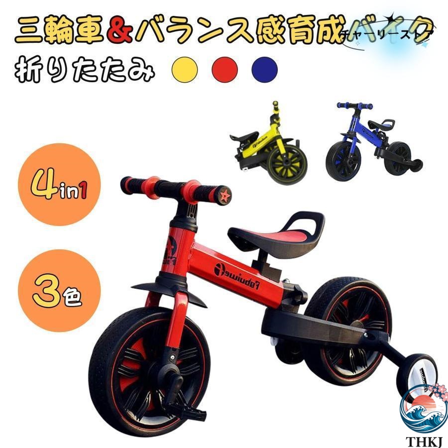 補助輪の取り外し変形が可能です。成長に合わせて三輪車、