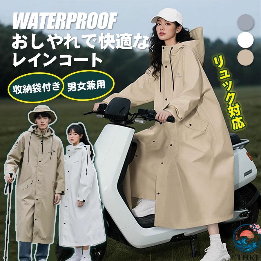 レインコート 自転車 レディース メンズ レインポンチョ リュック対応 カッパ 収納袋付き 前開き ロング丈 撥水加工 おしゃれ 自転車用 サイクル