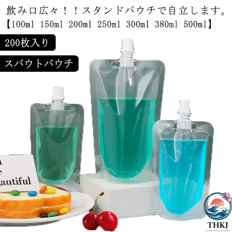 スタンド袋 透明 200枚入り 500ml スタンドパック パウチ 380 250 100 150 スパウトパウチ 300 規格袋 ふた付き 200 キャップ付