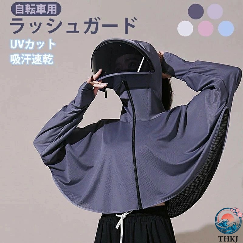 日焼け止め服 ラッシュガード レディース 自転車用 バイザー 日除けカバー 長袖 日焼け防止ジャケットサンシェードパーカー レディ UVカ