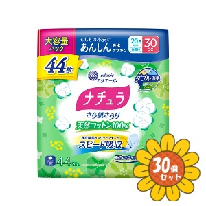 「セット販売」「大王製紙」ナチュラさら肌さらり天然コットン100% あんしん吸水ナプキン 20.5cm 30cc 大容量 44枚 30個セット
