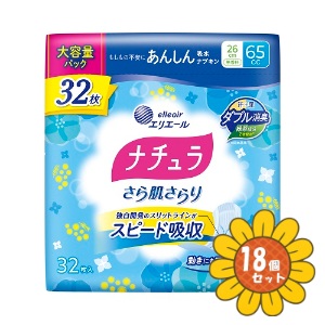 「セット販売」「大王製紙」ナチュラさら肌さらり あんしん吸水ナプキン 26cm 65cc 大容量 32枚 18個セット