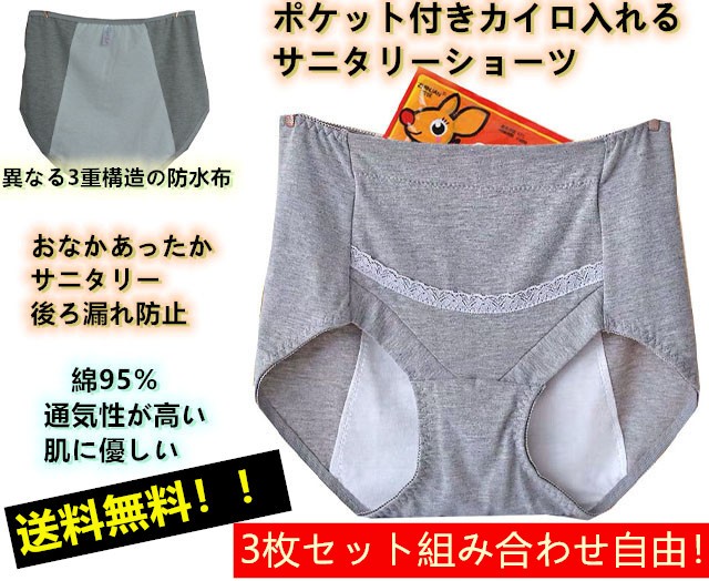 サニタリーショーツ 生理用ショーツ ポケット付きカイロ入れる 女性産褥ショーツ 通気性 漏れ防止 昼夜用下着