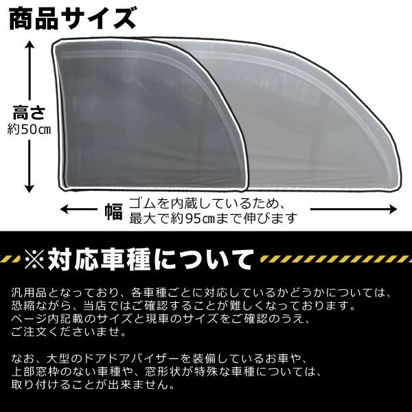 4枚セット 簡単装着 自動車用 網戸 防虫ネット ウインドウネット リア フロント 兼用 車中泊 花見 キャンプ アウトドア レジャー