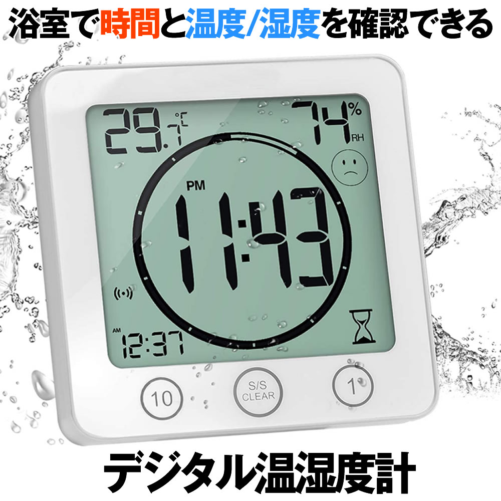 デジタル 温湿度計 防水 時計 タイマー 温度計 湿度計 温湿度計 湿温度計 温度湿度計 湿度温度計 デジタル時計 防水置時計 置き時計 浴室 BOTOKS