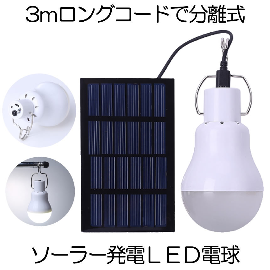 ソーラーライト 屋外 ソーラー電球 太陽光 発電 LED電球 ランプ ランタン テント 非常灯 照明 吊り下げ ポータブル 屋内 パネル 分離型 キャンプ アウトドア