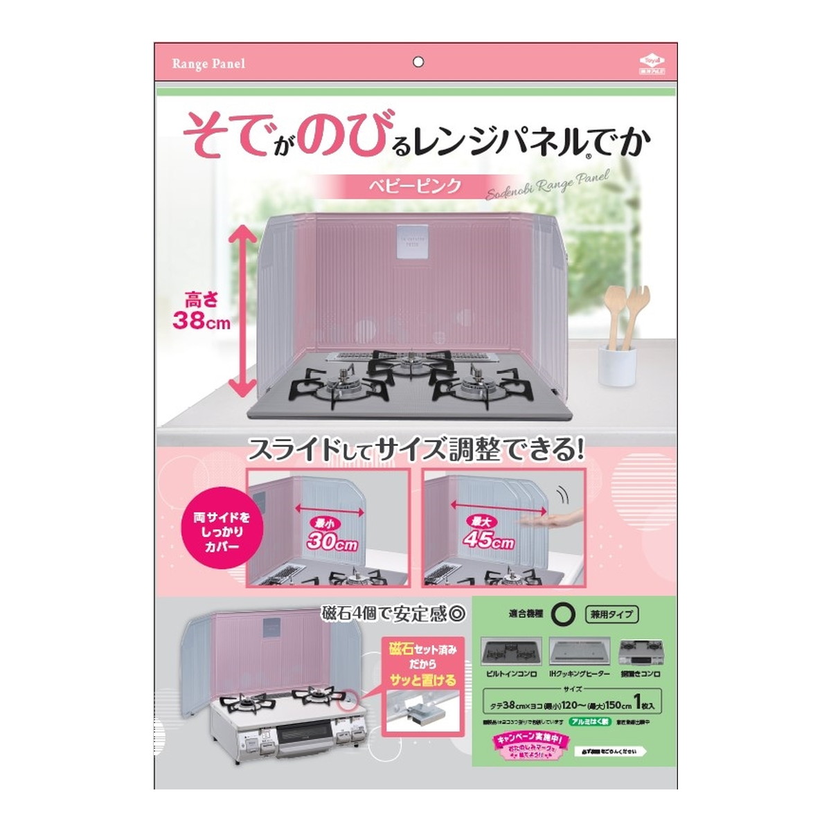 商品名:東洋アルミ そでがのびるレンジパネル ベビーピンク 1枚入