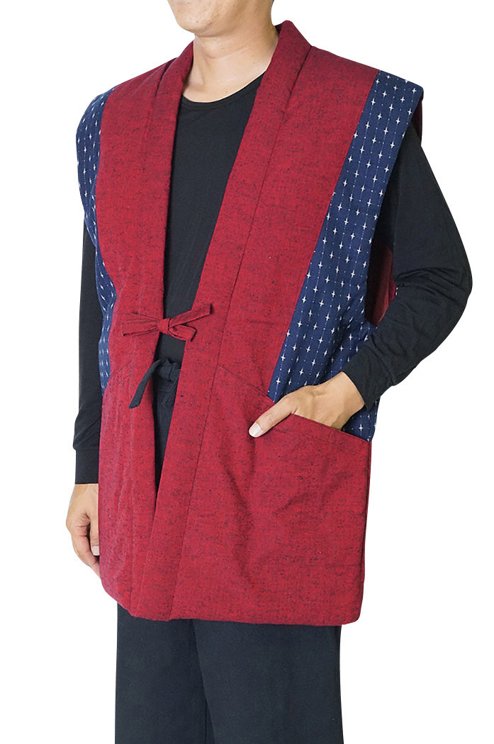 【ひめか】 はんてん 袖なし 日本製 綿入りポンチョ ベスト 706 エンジ