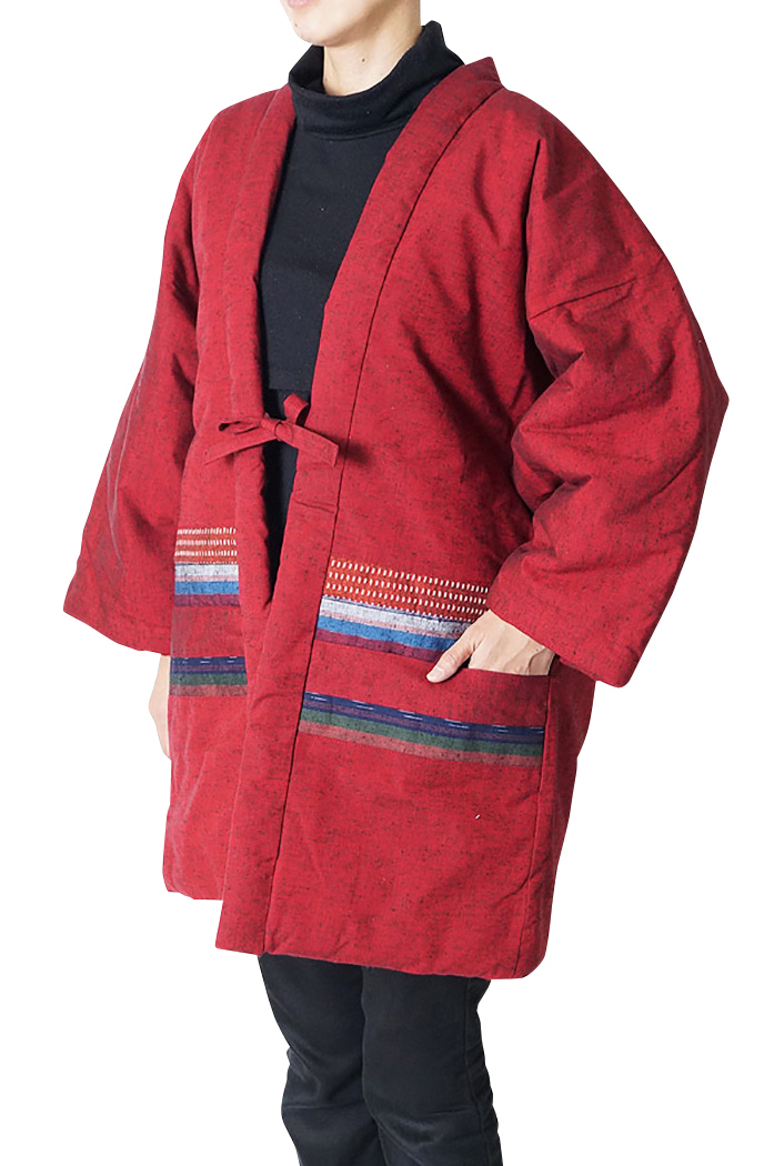 【ひめか】はんてん 日本製 久留 米手づくり半纏 綿入れはんてん 9601 エンジ
