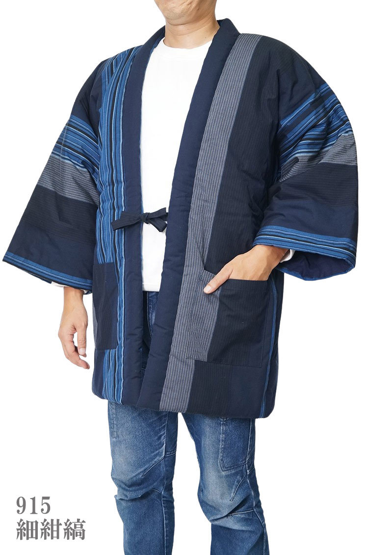 【ひめか】綿入り半纏 はんてん どてら 半天 915細紺縞