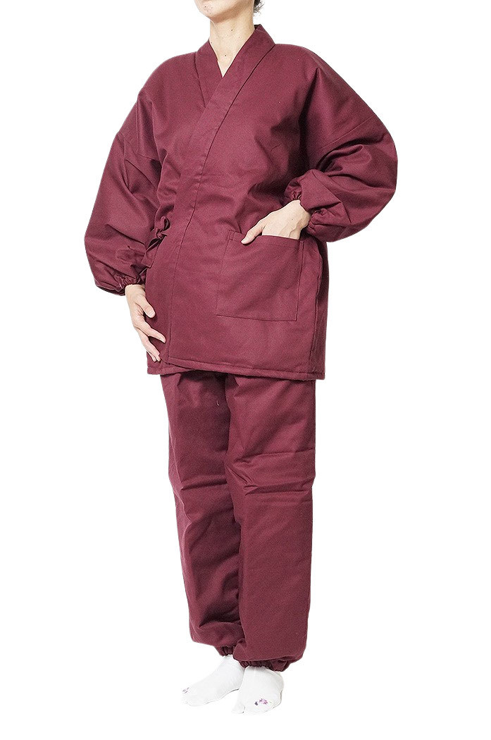 【冬用 作務衣】日本製 キルト中綿入り作務衣 婦人用(ピンク・赤紫)