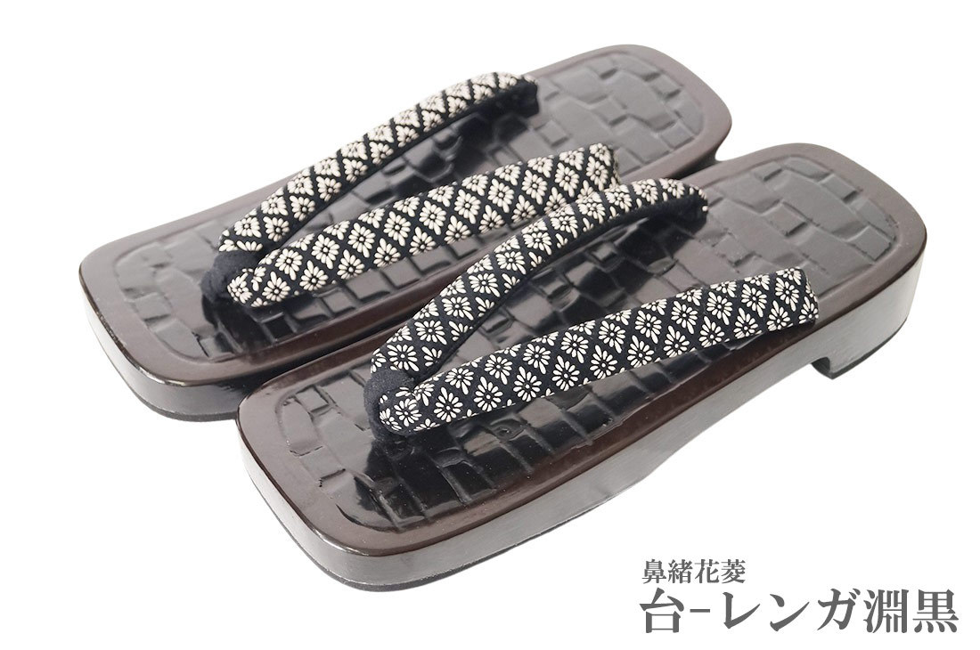 【ひめか】下駄 メンズ 日本製 高級 桐下駄 鎌倉彫り げた 鼻緒 印伝 台-レンガ淵黒