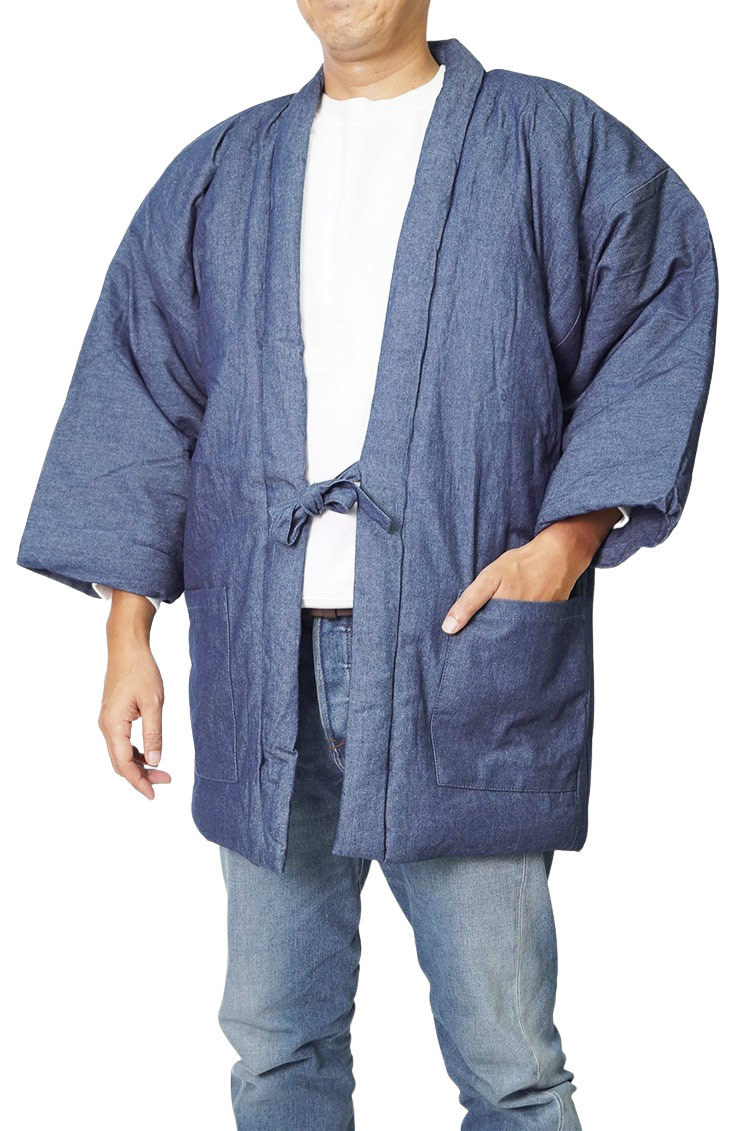 【ひめか】はんてん メンズ 綿入れ 半天 丹前 どてら 綿入り 半纏 デニム 大きいサイズ 布団 丹前 どてら 即暖 暖かい 防寒着 冬 ハンテン 紺 7L
