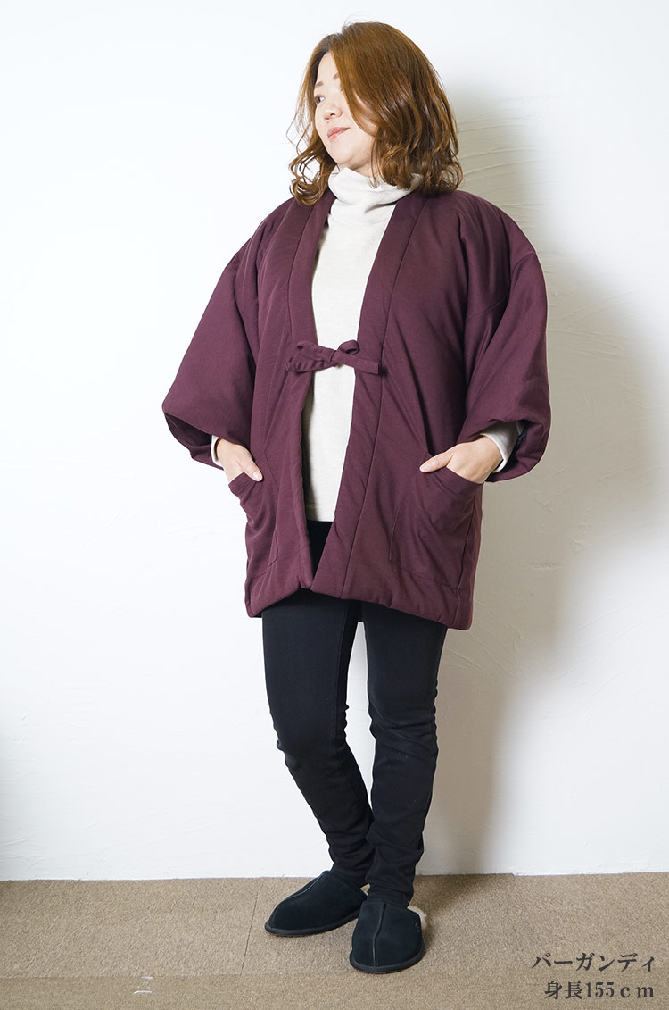 【ひめか】 はんてん レディース スラブニッ ト 綿入り 半纏 ハンテン 半天 どてら 丹前 即暖 ストレッチ 部 屋着 ルームウエア 半纏 バーガンディ M