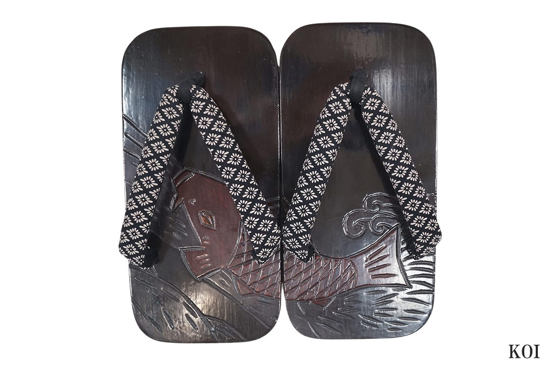 【ひめか】下駄 メンズ 日本製 二枚歯 下駄 板鎌倉彫り 鼻緒印伝花菱 KOI