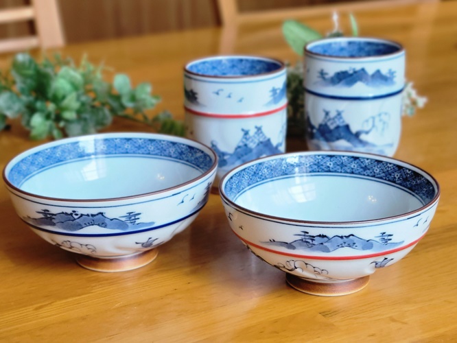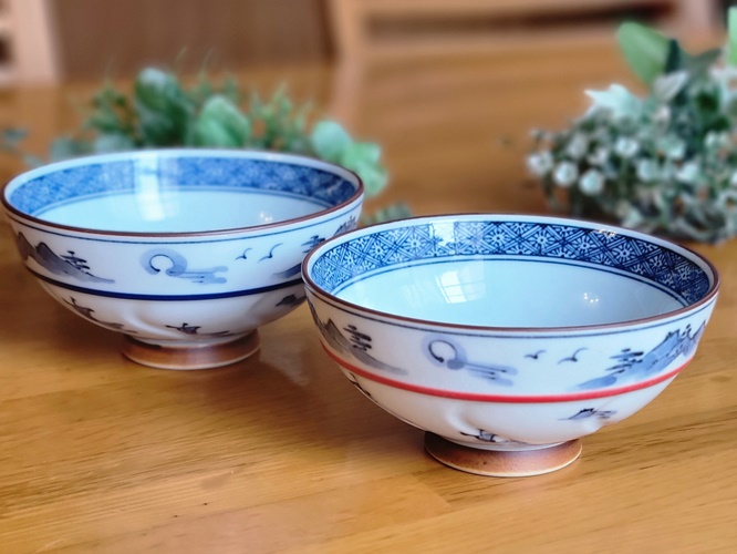 染付の山水画が印象的なご飯茶碗。