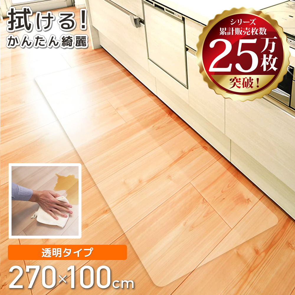 キッチンマット 270 × 100cm 拭ける 透明 防水 おしゃれ 120 クリア キッチン マット フロアマット デスク下マット チェアーマット カーペット ダイニングマット チェアマット チェア用 床保護マット 送料無料 一人暮らし 引っ越し 新築 プレゼント ギフト 床 フローリング 傷 汚れ 防止 保護 防汚 お手入れ簡単 丈夫 耐熱 温度 85度 滑りにくい すべりにくい 防滑 世界基準 衛生試験 クリア ペット 子供 赤ちゃん 安心 安全 OK