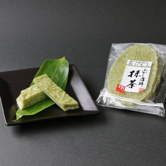 【原材料】魚肉、抹茶、でん粉、砂糖、食塩、卵白、かつおだし、昆布だし、山いも、発酵調味液、調味料(アミノ酸等)、ソルビット、保存料(ソルビン酸K)