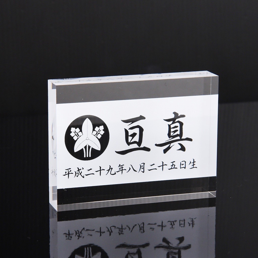 アクリル立札 家紋/名前/生年月日(五月人形 兜 正月 お節句 名前札) お祝い 送料無料