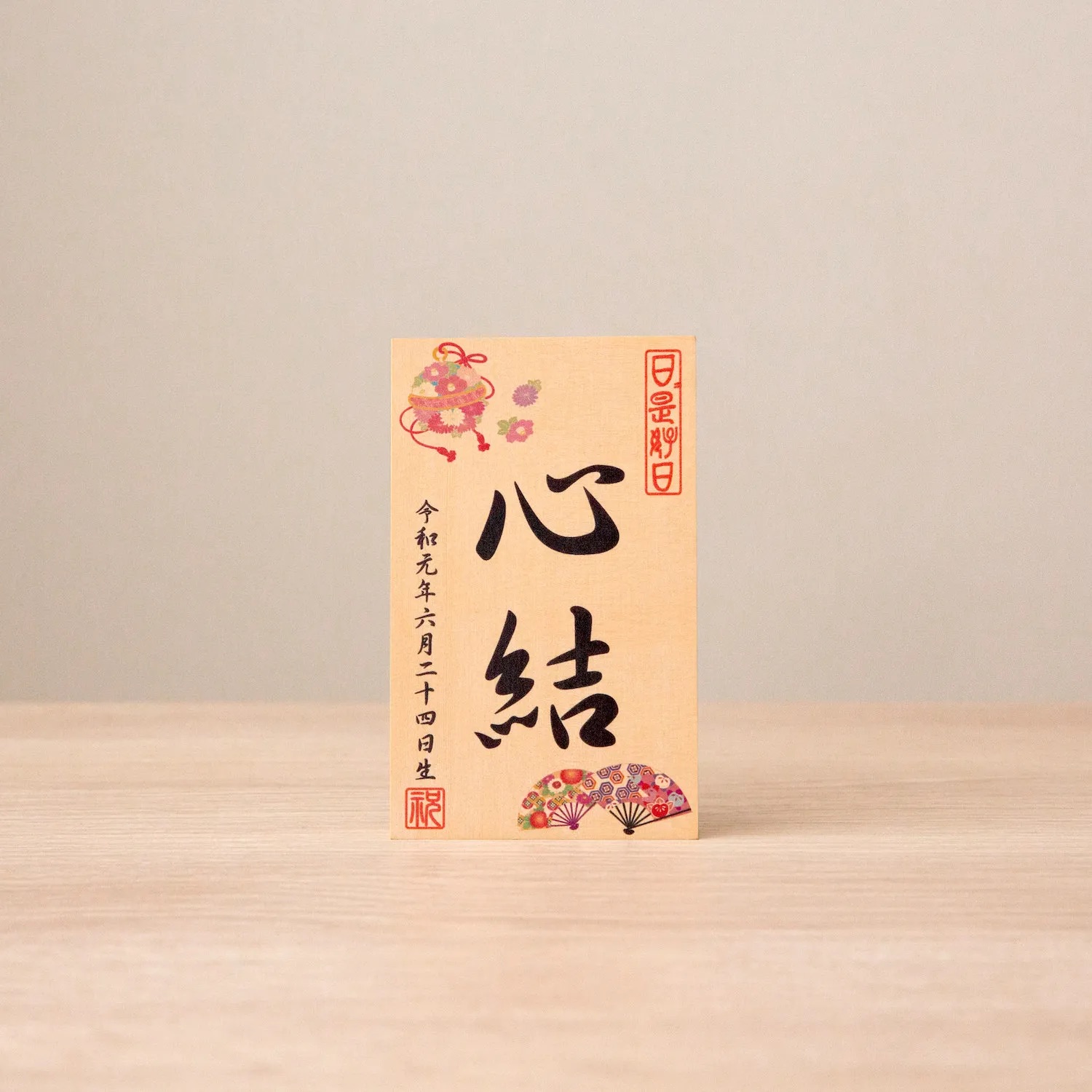 お人形や羽子板の脇にお飾り頂く、お名前・生年月日入りの立札です。