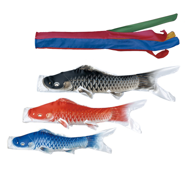 五色吹流し1.5m、黒鯉1.5m、赤鯉1.2m、青鯉1m