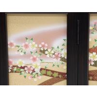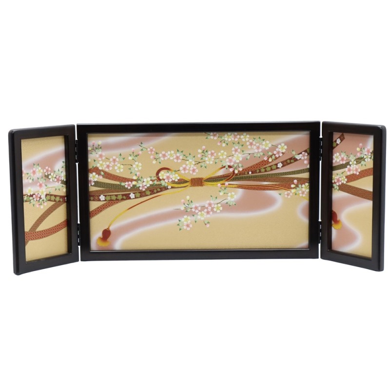 アウトレット品 屏風単品 三曲屏風 9号 ベージュ色 のし束桜 レトロ アートスタンド