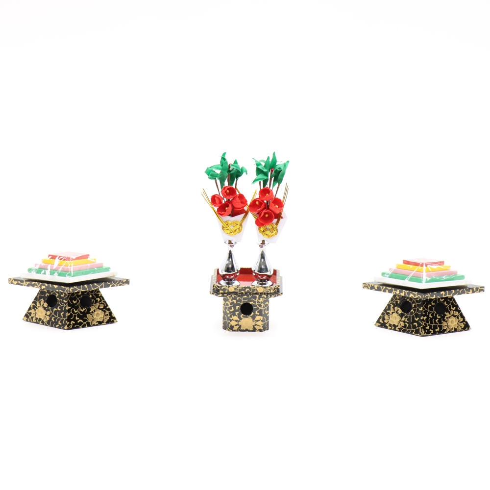アウトレット品 雛人形 道具単品 雛道具2点セット 25号 黒塗り 古代唐草 高さ16cm インテリア ディスプレイ 見切処分品
