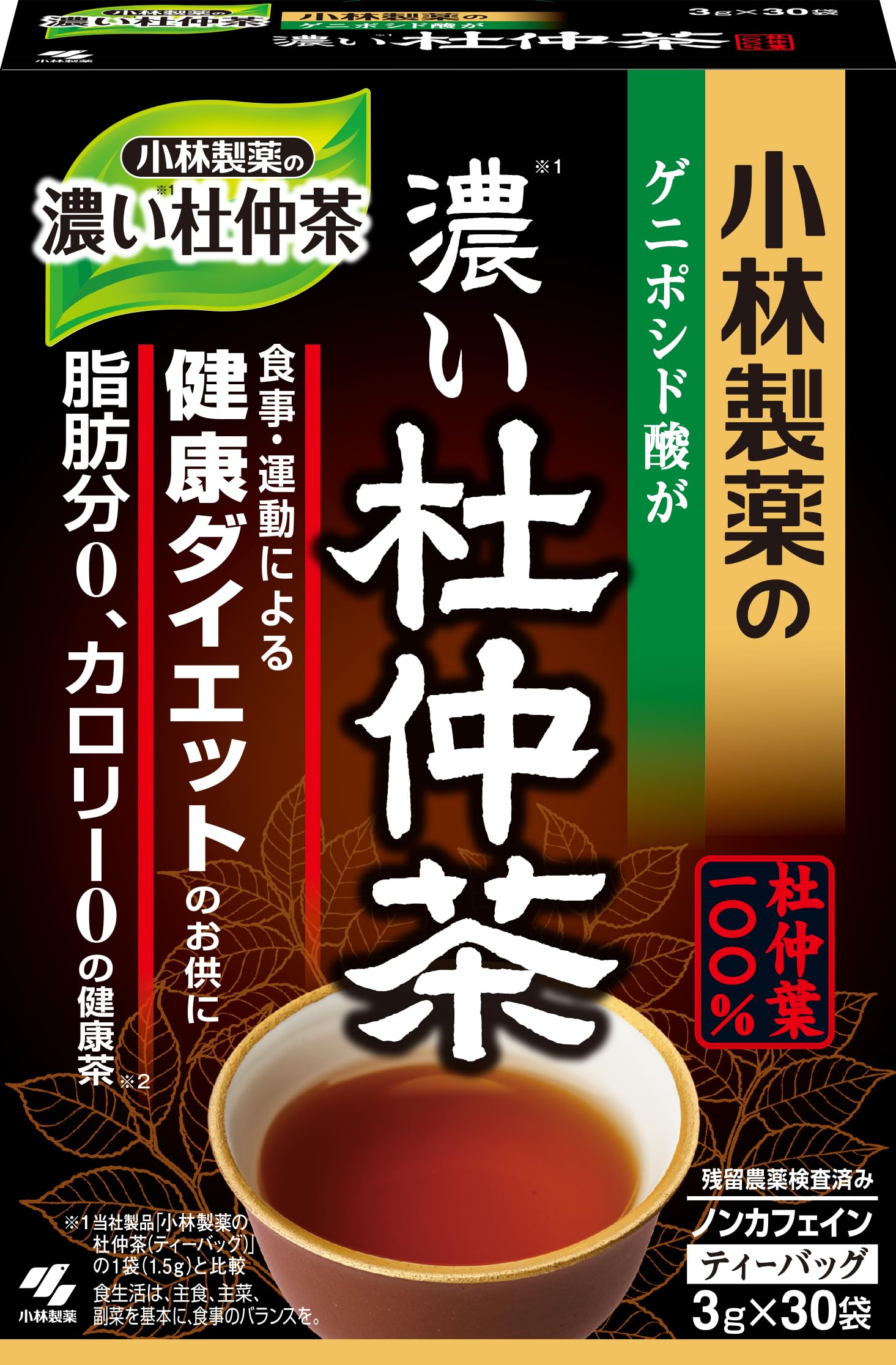 小林製薬の杜仲茶 濃い杜仲茶 公式 脂肪分0、カロリー0の健康茶 ティーバッグ タイプ 栄養補助食品 / 3g×30袋