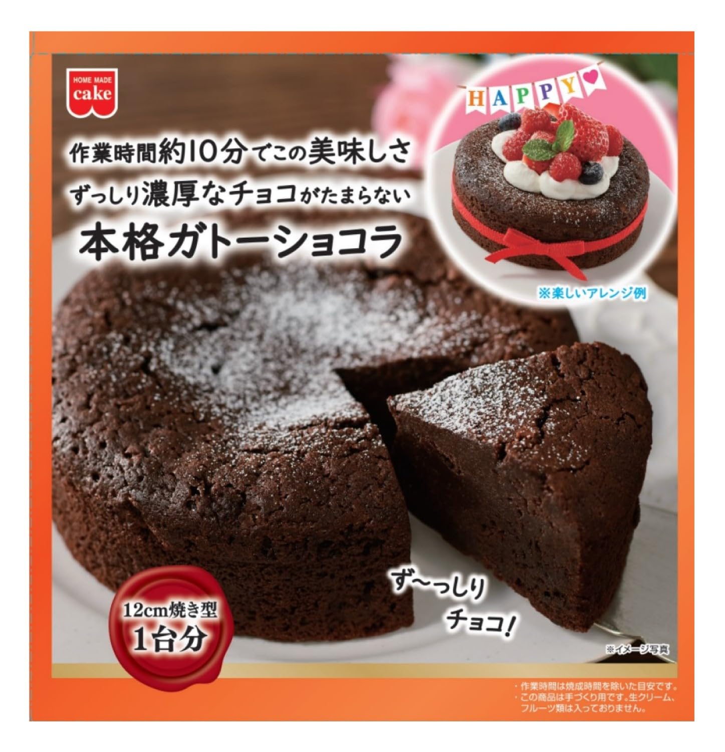 商品紹介 作業時間約10分で美味しいずっしり濃厚なチョコがたまらない本格ガトーショコラが作れます。※12?焼き型 1台分。共立食品株式会社は製菓材料、ナッツ、ドライフルーツの・加工・製造を一貫して行うです。レシピサイトや手づくりお菓子コンテストなども展開しており、“食”を楽しむ時代へ多彩なシーンを提案しています。 原材料・成分 ガトーショコラミックス〉砂糖(国内製造)、小麦粉、ココアパウダー/乳化剤、膨張剤、加工デンプン、増粘剤(キサンタンガム)、(一部に小麦・乳成分・大豆を含む) 〈チョコレート〉砂糖(国内製造、外国製造)、カカオマス、ココアバター/レシチン、香料、(一部に乳成分・大豆を含む)〈粉糖〉砂糖(国内製造)、コーンスターチ