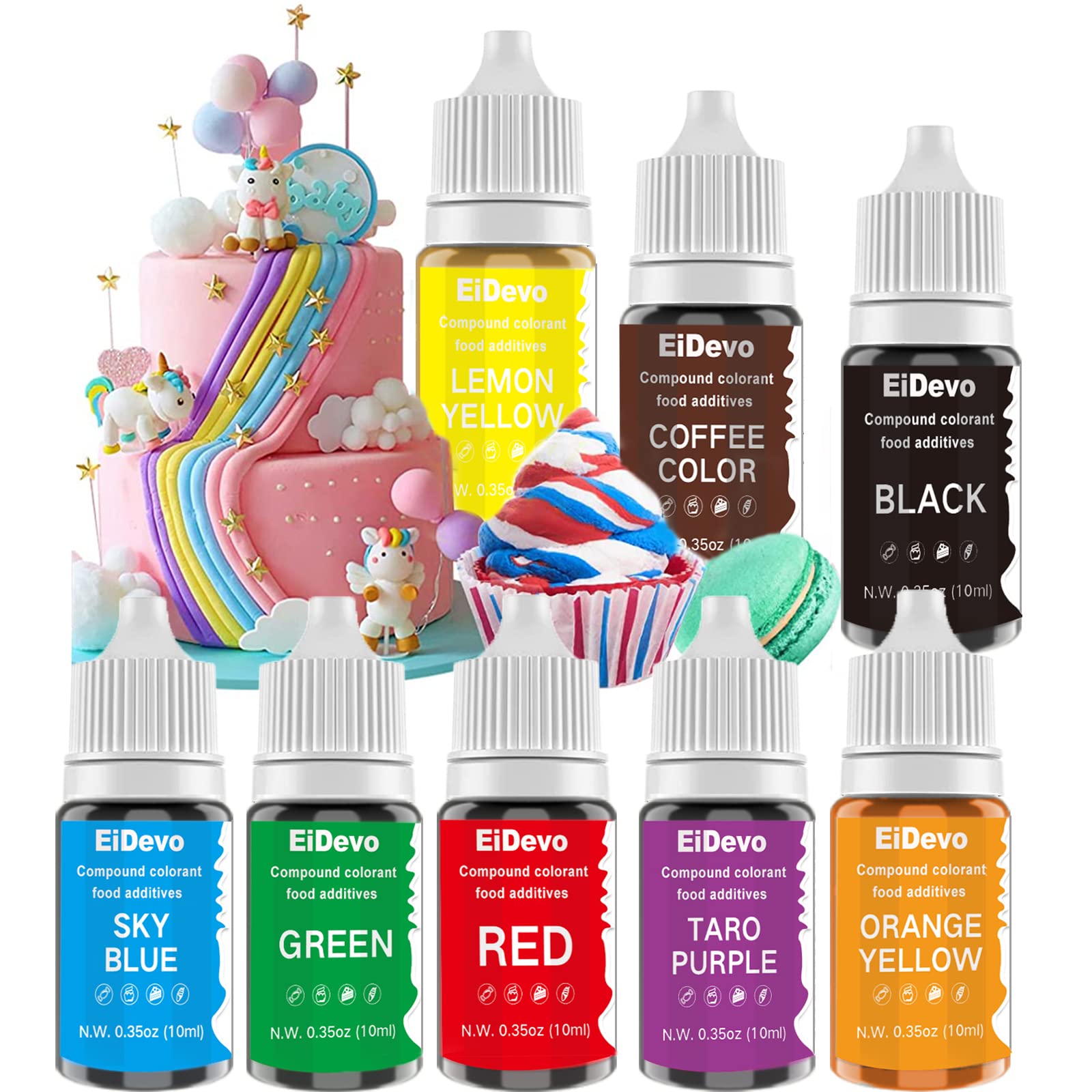 EiDevo 食用色素 8色セット食品着色料 食用 液体 アイシング カラー 食紅 製菓 材料 デコレーション クッキー アイシングカラー(
