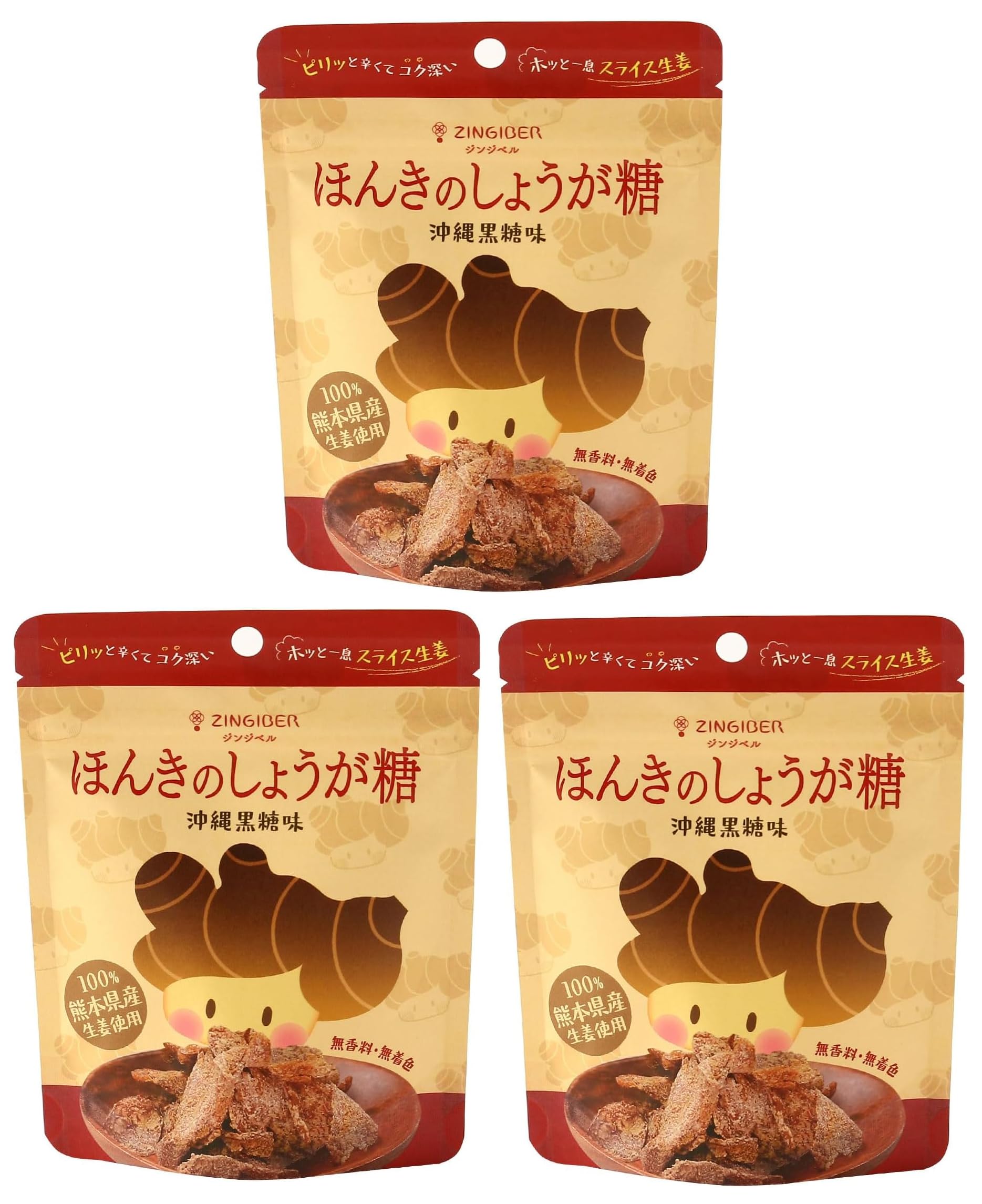 ジンジベル ほんきのしょうが糖 沖縄黒糖味 32g×3 / 生姜 ジンジャー 生姜湯 おやつ 砂糖菓子 黒糖菓子