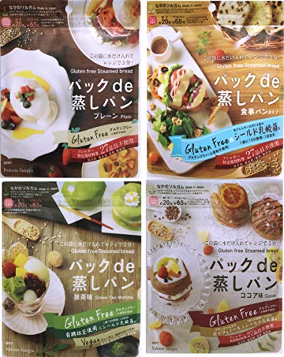 中野産業 レンジ3分で蒸しパン グルテンフリー アレルギーフリー パックde蒸しパン4種(プレーン80g×1袋、ココア80g×1袋、抹茶80g×1袋、食事用80g×1袋)