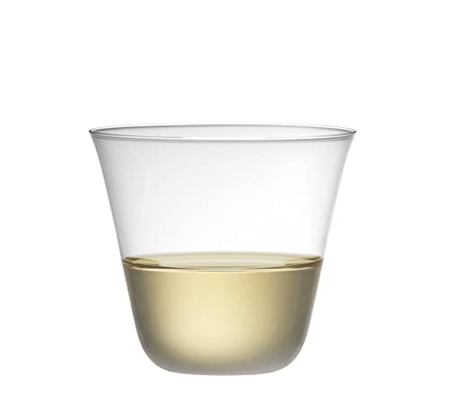 口元の広がったハンドメイド極薄グラス。スタッキングも可能です。ステムのないワイングラスとして作りました。