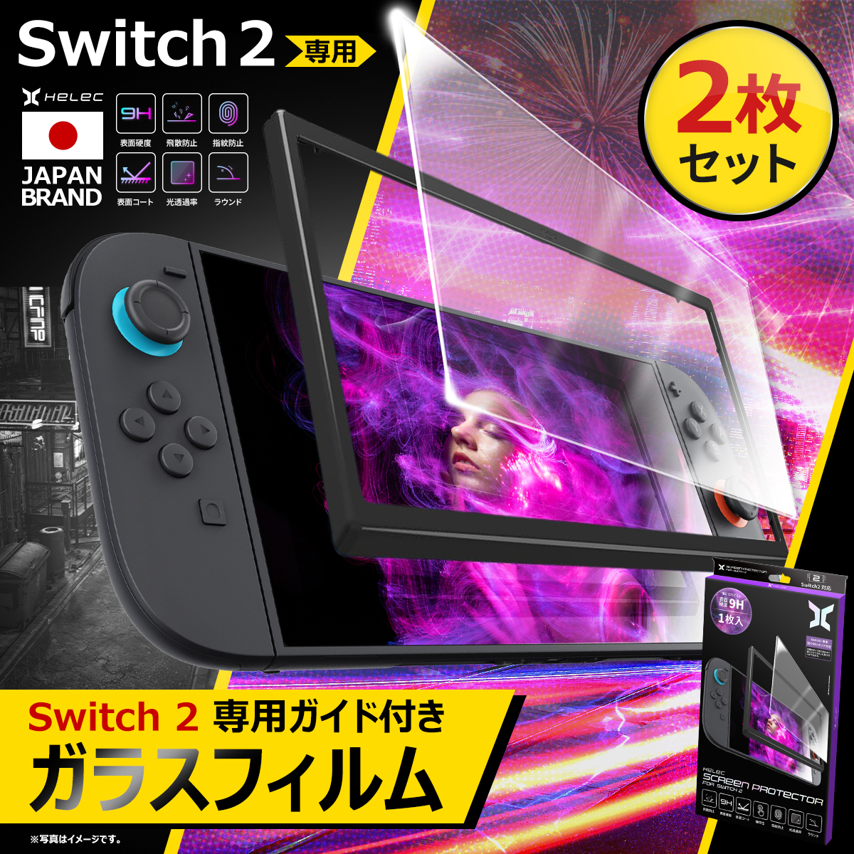 スイッチ2 保護フィルム 【ガラスフィルム2枚 + ガイド付き】 Switch2 全面保護 ピッタリサイズ 硬度9H 高透明 気泡ゼロ 指紋防止 飛散防止 ドック対応
