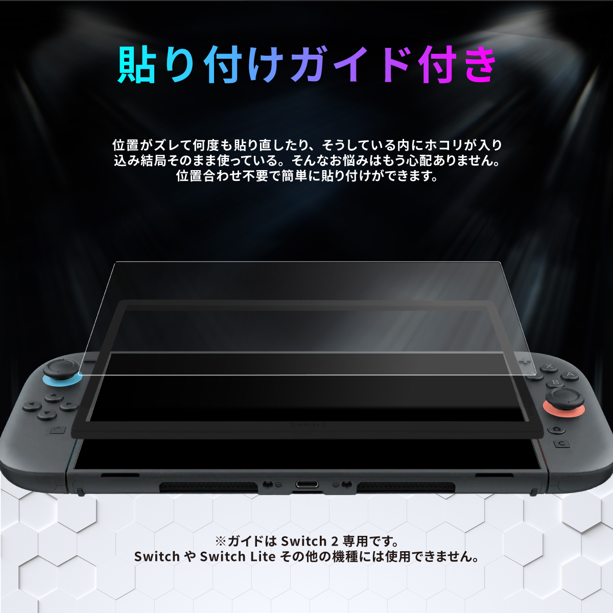 Switch 2 専用設計の貼り付けガイド付きで、簡単に貼り付けができます。