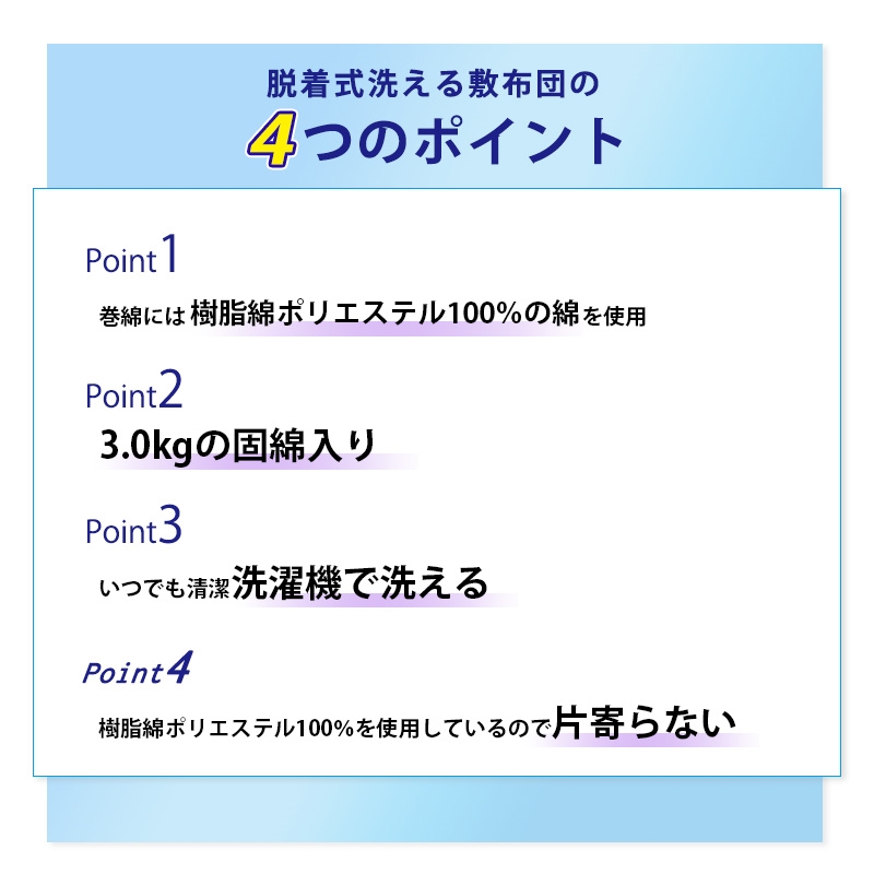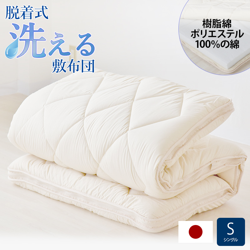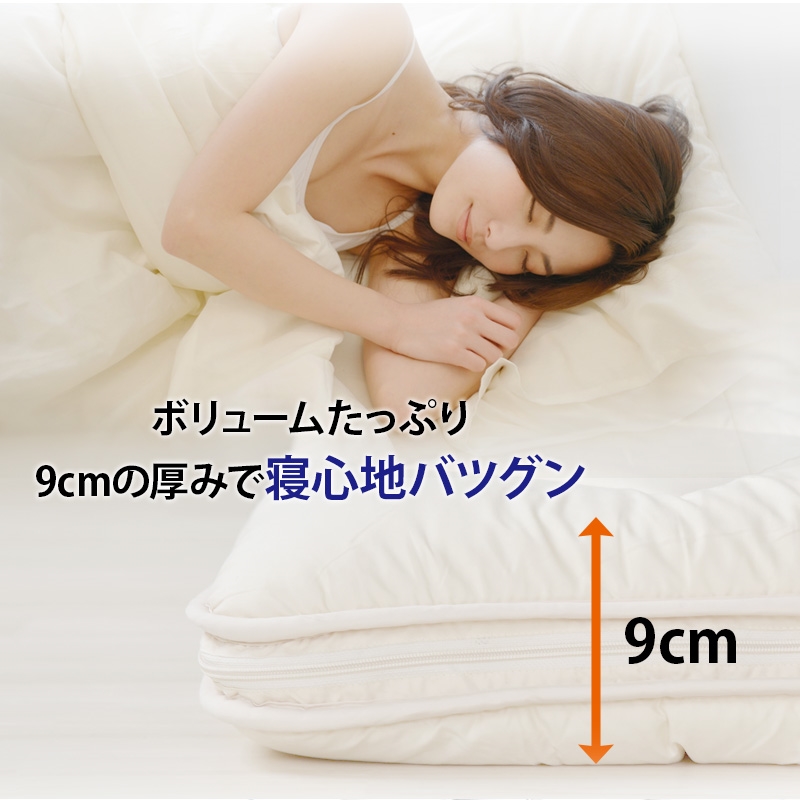 | ※ファスナー式で中の固綿を取り出せ、外側は2枚に分かれて洗濯機で洗える(洗濯ネットに入れソフト洗い、掛け干し)