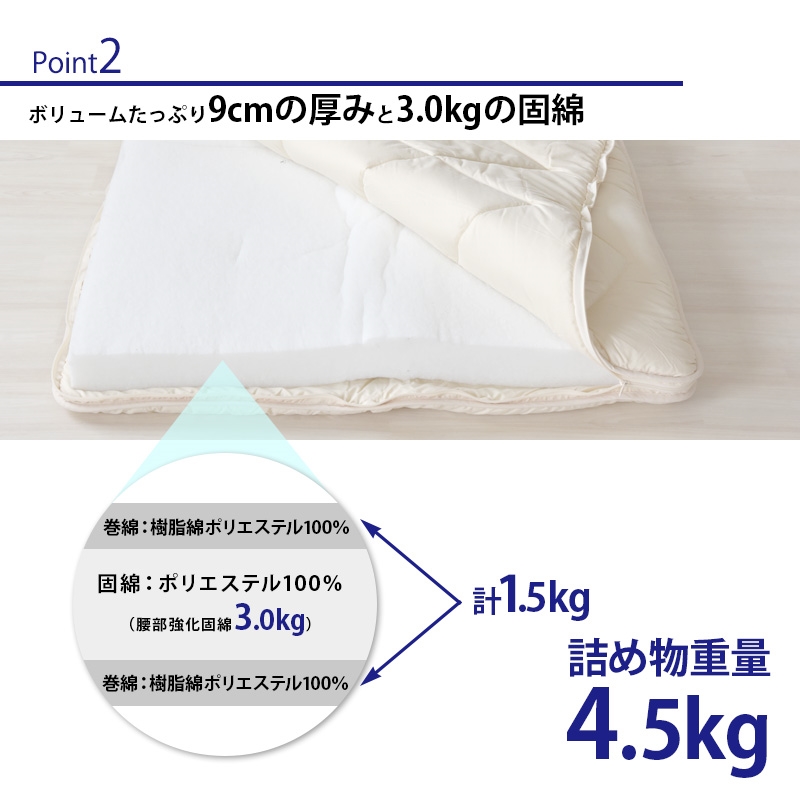 | ポリエステル100%(腰部強化固綿3.0kg)※腰へたり防止