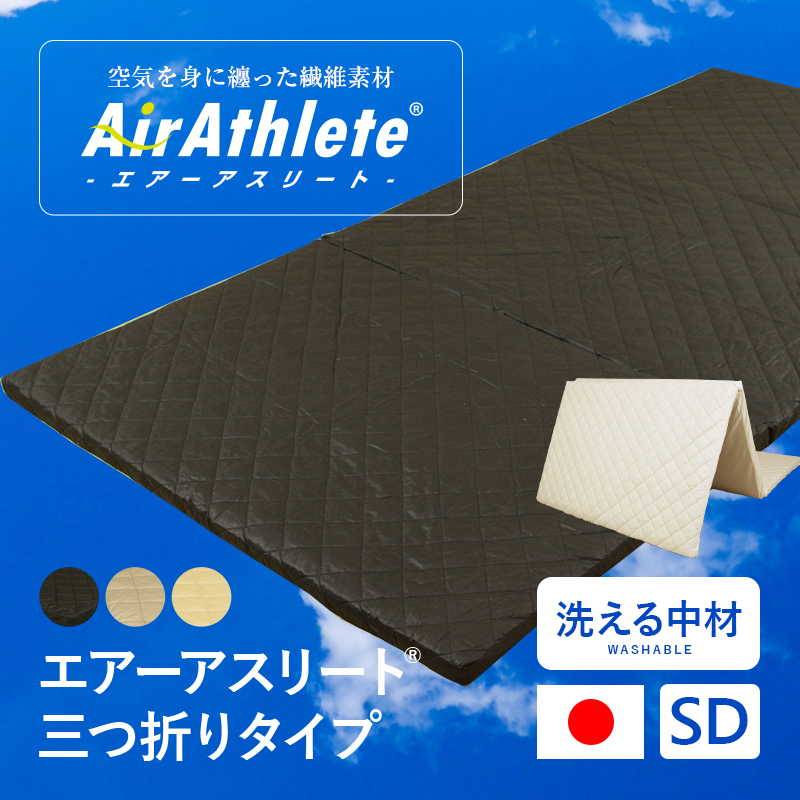 マットレス セミダブル エアーアスリート 洗える 硬め かため 三つ折り 体圧分散 硬い 敷布団 高反発 日本製 腰痛 通気性 透水性 耐久性 洗える 清潔 薄型 国産