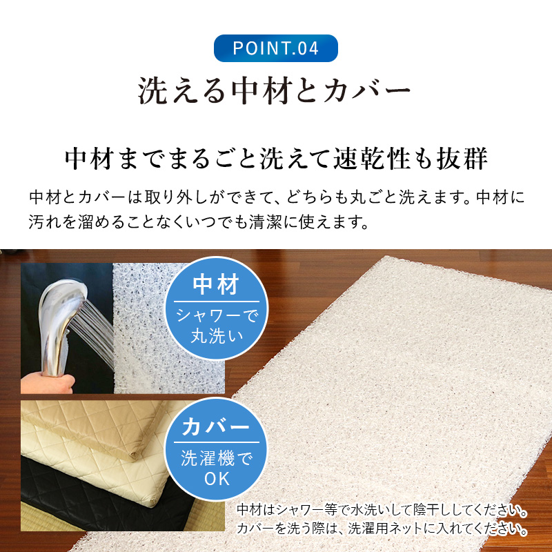 中材はシャワー等で水洗いして陰干ししてください。