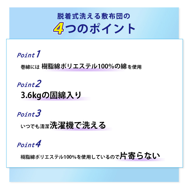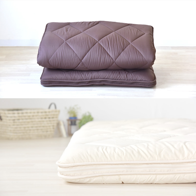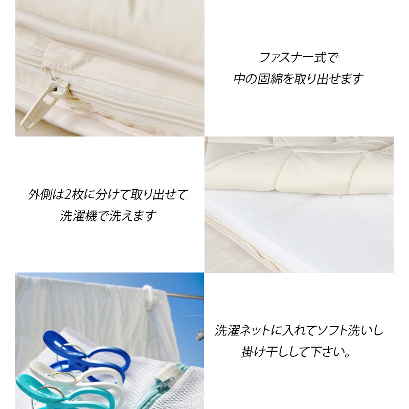 ※ファスナー式で中の固綿を取り出せ、外側は2枚に分かれて洗濯機で洗える(洗濯ネットに入れソフト洗い、掛け干し)