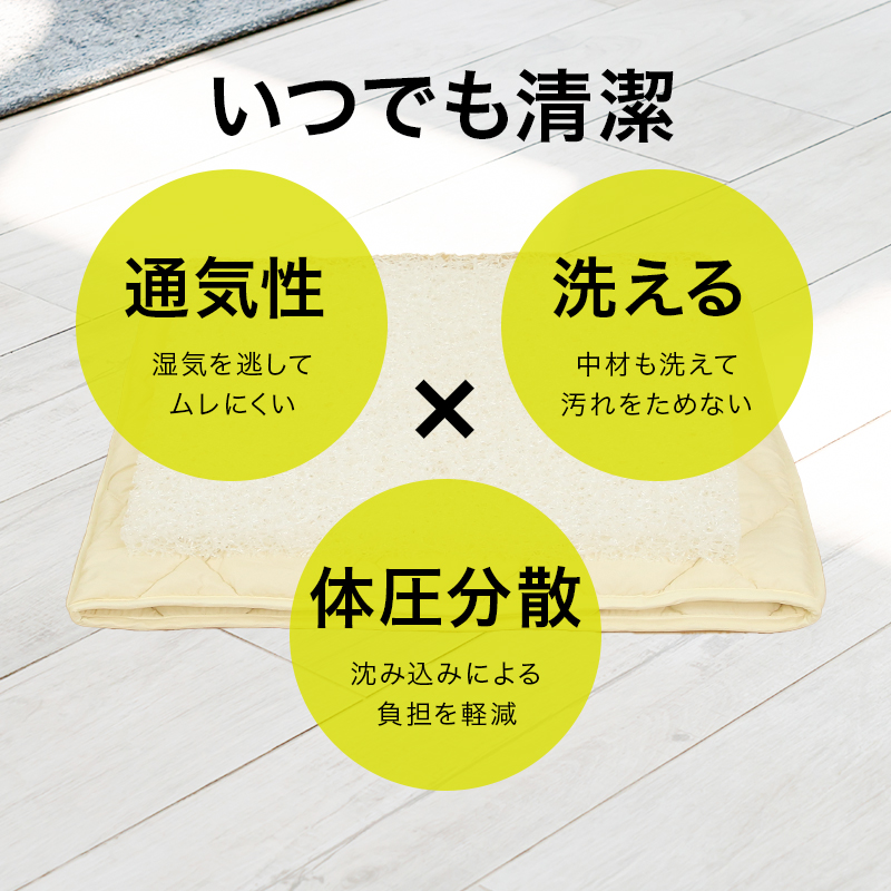 高反発で寝返りをサポートするので、寝返りができないペットの床ずれ防止にもなります。