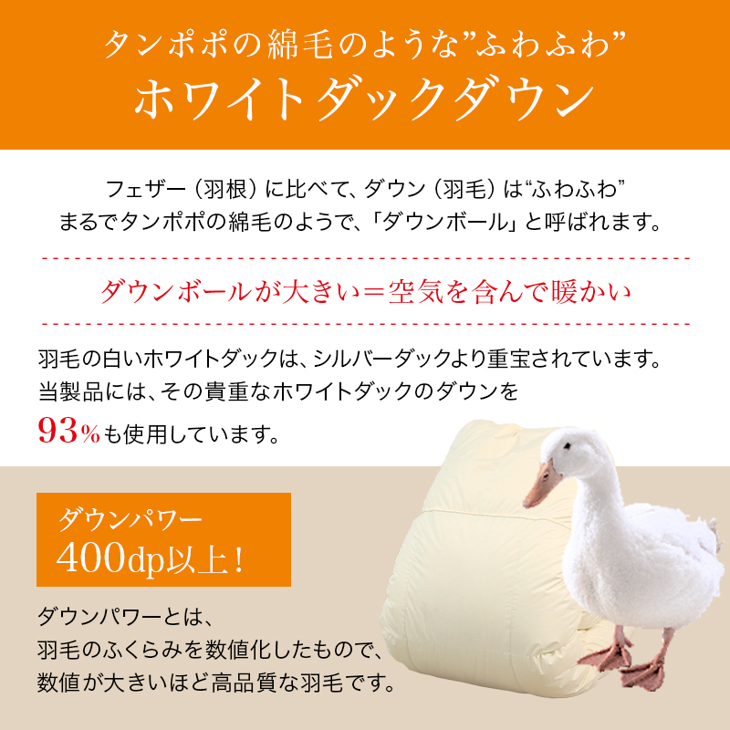 片寄らない羽毛掛け布団 93% ダブルサイズ