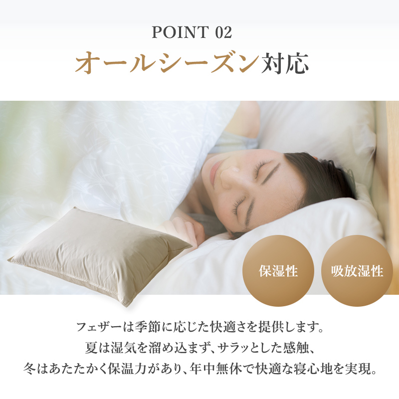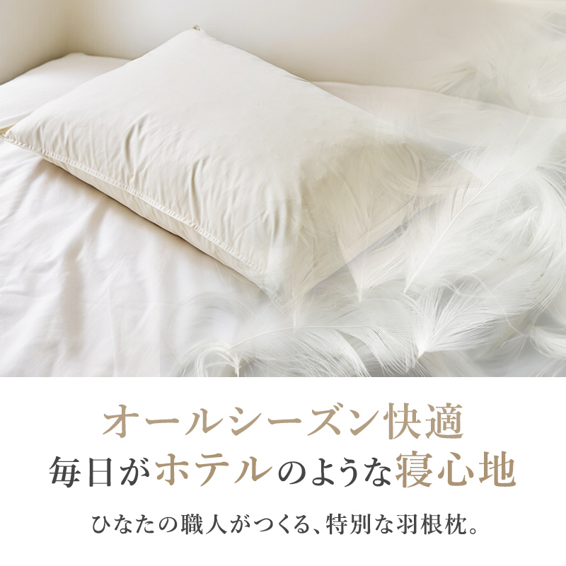 羽根枕 羽根まくら ホテル仕様 フェザー100% 枕 ピロー スモールフェザー やわらかい枕 ホテル 仕様 羽根まくら オールシーズン やわらかさ 保湿性 吸放湿性